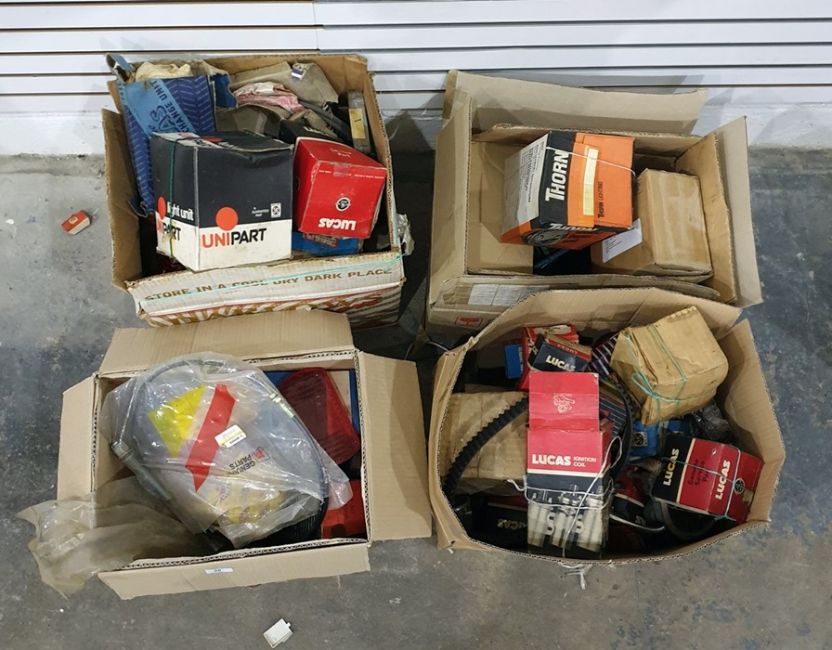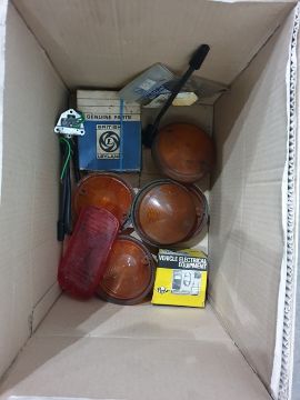 Assorted car parts, some still in packaging