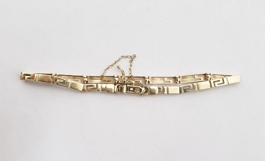 14k gold bracelet in the form of rectangular and Greek key links, 6g,
