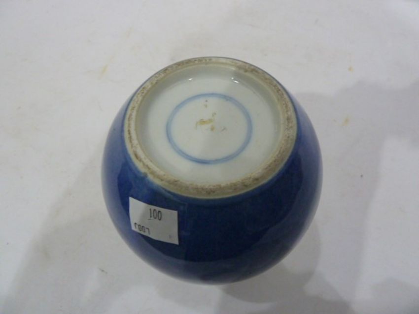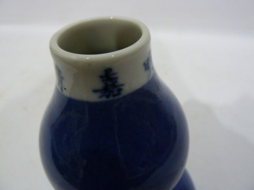 Chinese porcelain double-gourd vase, powder-blue glaze with reign mark to the rim, 23cm high