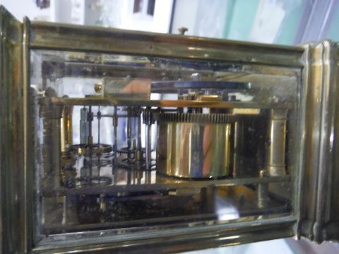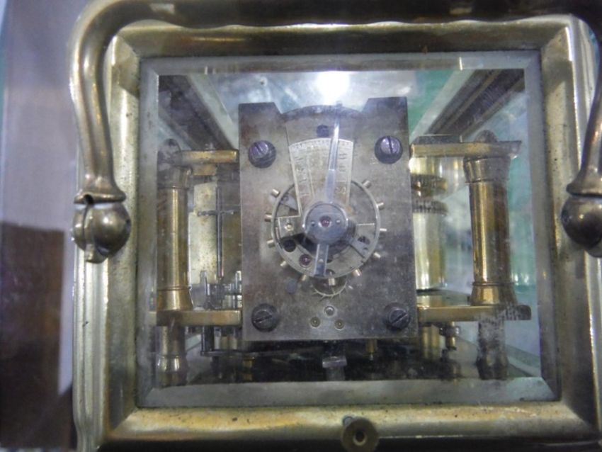 French brass striking carriage clock, with Roman numerals to the dial