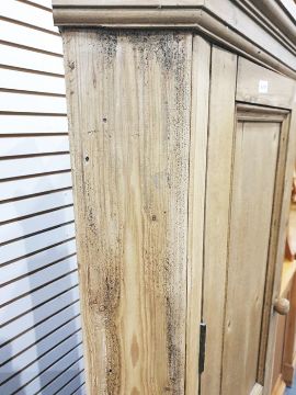 Old pine standing corner cupboard, the fielded panel door enclosing three shelves, width 67cm x height 162cm