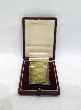 George IV silver gilt etui-pattern style note card holder (or bridge marker) containing ivory tablet, gilt mounted pencil holder, London 1825, 6.5cm high, in fitted case