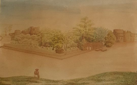 Late 19th/early 20th century school(?)Set of three watercoloursMiddle Eastern riverside scenes with castles, figures in boat and figure on riverbank, 18cm x 28cm (3)