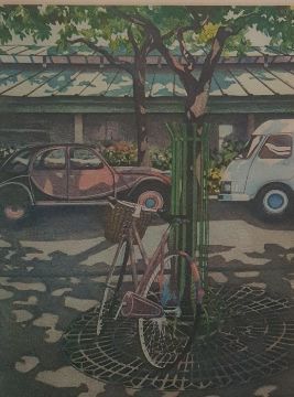 Coloured etching, pairAfter Peter Buridge  ( born 1960)Parisian cafe scene, signed in pencil , 7/150After V Charlesworth Artist's proof'7pm Bank Holiday Monday', signed and inscribed in pencil ( 3)