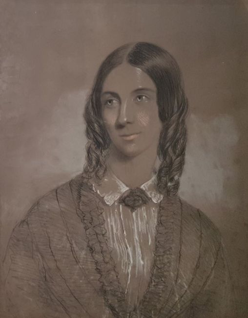 UnattributedTwo charcoal and pastel drawingsHead and shoulders portrait of a young woman, Jane Vivien Woollcombe (1823-1910) (married William Boyce 1849), 61cm x 47cm Head and shoulders portrait of a gentleman, William Boyce (1820-?), 60cm x 47cmBlack and white photograph of Edward Playne (3)