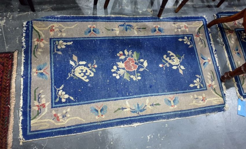 Pair of Chinese blue ground carpets, foliate decoration, 132cm x 75cm (2)