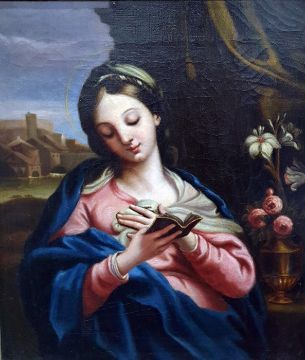 In the manner of Carlo Maratta Oil on canvas The Virgin Mary reading from a book, unsigned, 39cm x 33cm