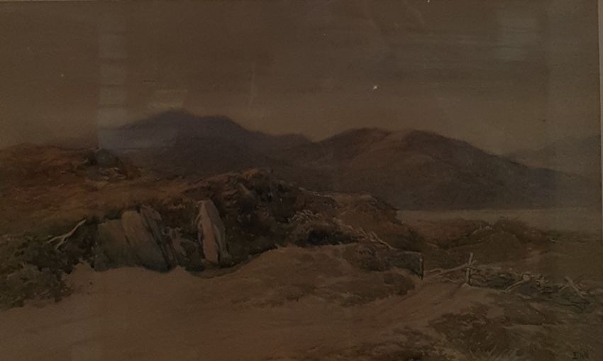 Edmund Morison Wimperis (1835-1900)WatercolourMoorland path with lake in background, initialled and labelled to mount, 27.5cm x 46cm