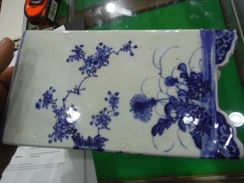 Chinese porcelain jardiniere of square form, decorated in blue and white with flowers, a Delft blue and white bottle vase of panelled design, decorated with flowers, a George Jones & Sons blue and white bowl in the 'Abbey' pattern and various other items