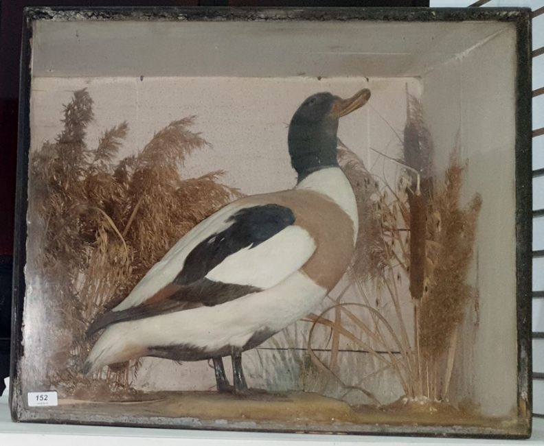Taxidermy, stuffed and mounted model of a common shelduck, in glazed cabinet, 52cm x 61cm