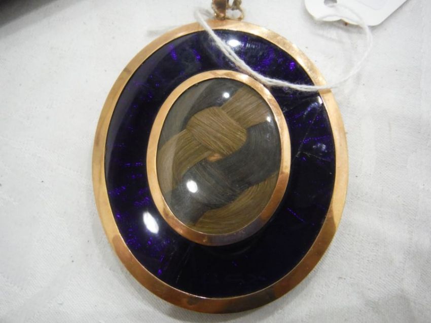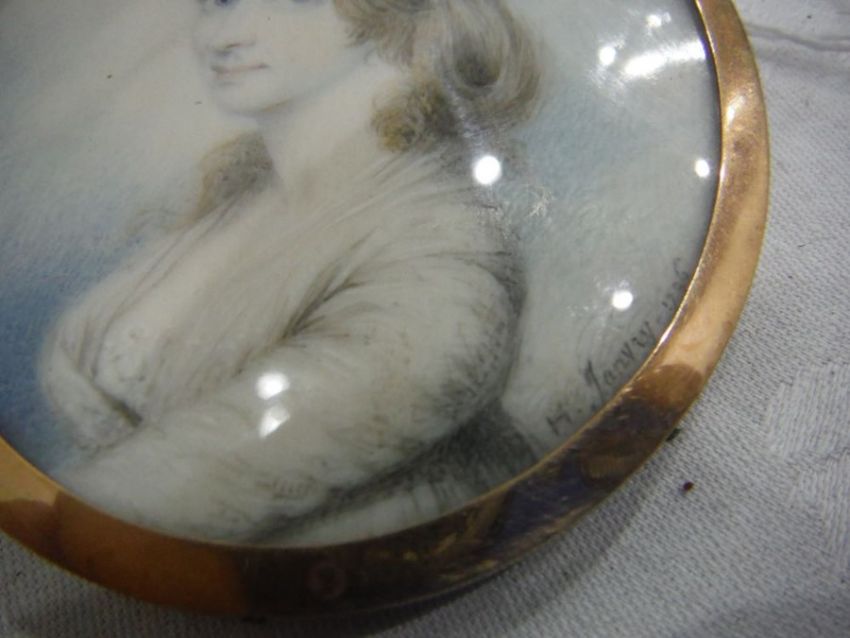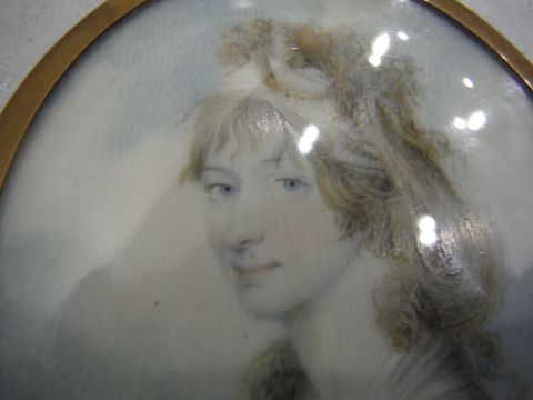 Henri De Janvry (late 18th century)Miniature portrait on ivory Young lady in white dress, signed ‘H Janvry’ and dated 1796 lower right, oval, with braided locks of hair verso, 7cm x 5.75cm |