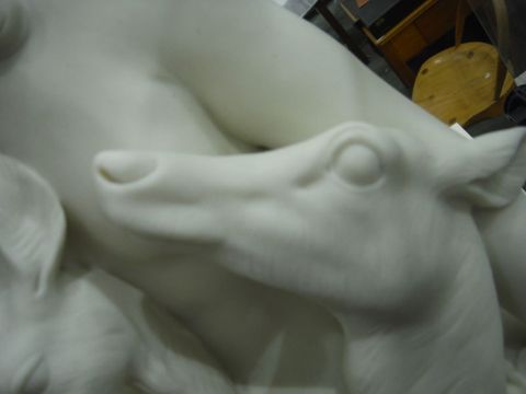 Victorian Parian figure group, modelled by C B Birch, of Diana seated with a deer beside her and a fawn on her lap, the circular base dated 1866, 48.5cm high Condition Reportchip to the base, there appears to be two small holes one in the back of the head and another in the side of the deer. there is a bit of wear to the front and to the fingers on one hand, generally however okay. Please see attached images.