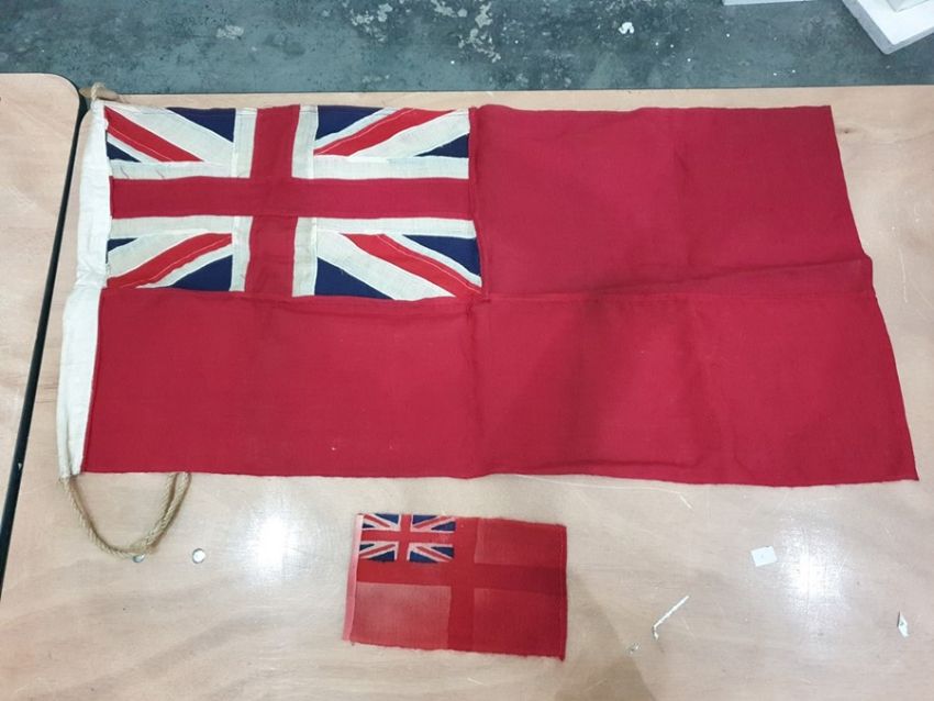 Reproduction Isle of Lewis resin chessmen and assorted naval flags