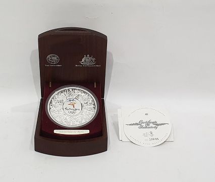 Sydney 2000 commemorative 30 AUD silver coin, 999 standard, 1kg, in presentation case with certificate of authenticity, coin no.10695
