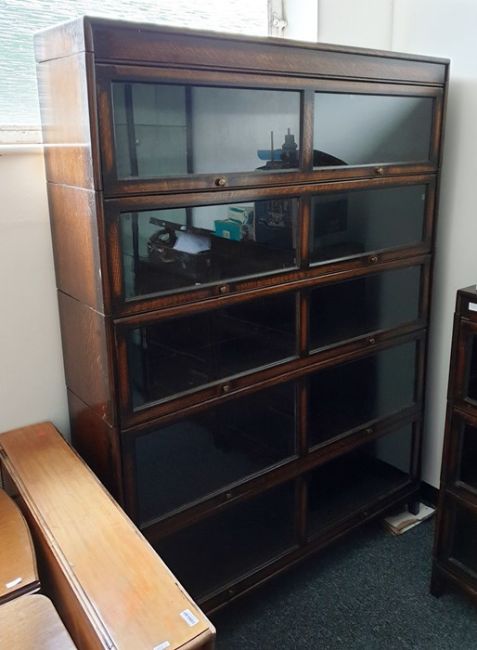 20th century oak five-sectional bookcase, 128cm x 175.5cm