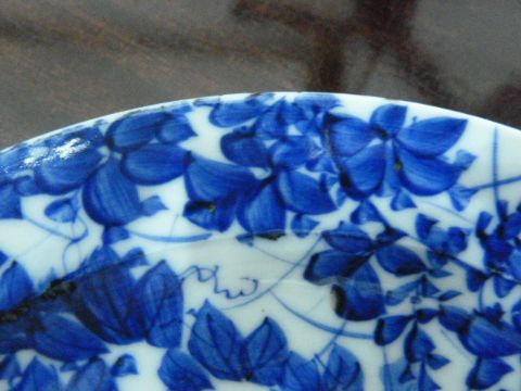Chinese Kangxi porcelain small dish, circular and decorated with pair of kylin on a blue wash ground, 16cm diameter Condition Reportplease see images
