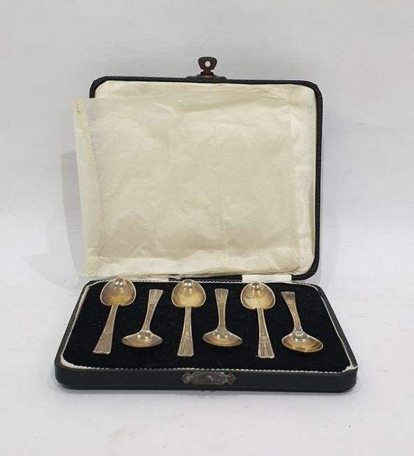 Set of six silver coffee spoons, Sheffield 1957 in fitted case