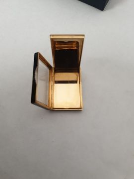 Art Deco enamel, mother-of-pearl, abalone, diamond and gold pill box, indistinct marks, of rectangular form, the glazed and enamel hinged cover with diamond set thumbpiece revealing a hinged panel depicting a falconer on horseback in the Persian style, 3.75cm x 2.5cm (Provence: two of these boxes were bought from Julius of 21 Regent Street on 9th May 1946 for £130, prior to this they were from the collection of Lt Col Claude Beddington, Sothebys, 2nd May 1946, lot 76)