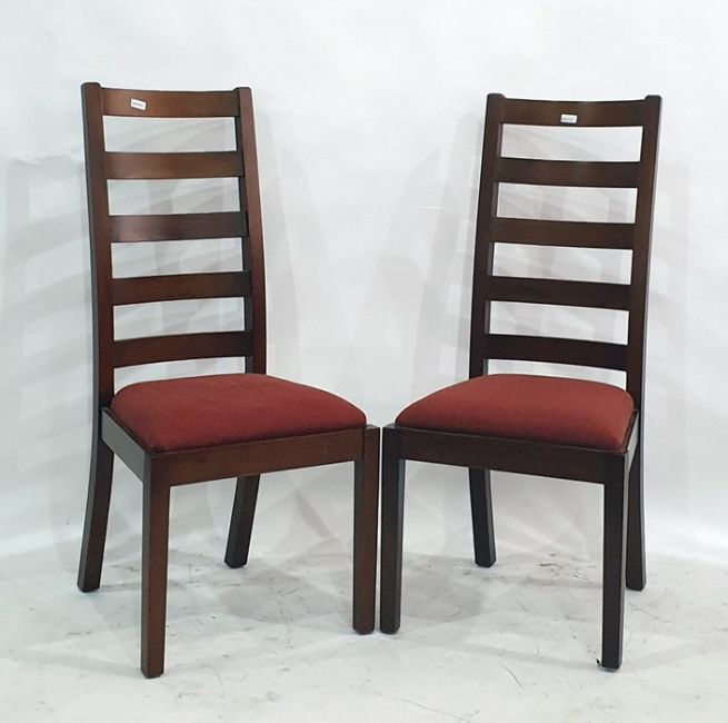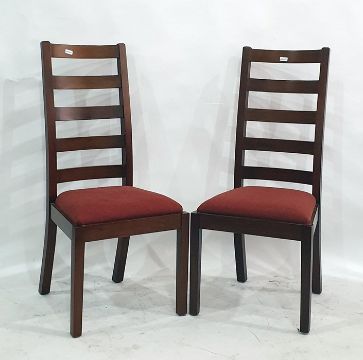 Set of six 20th century ladderback dining chairs with red upholstered seats (6)