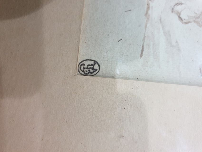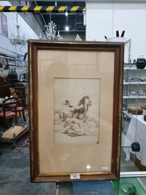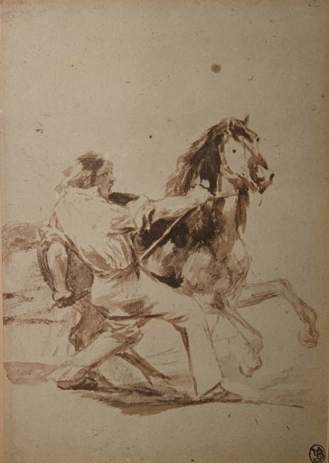Please see attached images.PRINT after Goya - with monogram, man restraining horse 25 x 17cm  This is an amended catalogue description from originally described as pen and wash drawing
