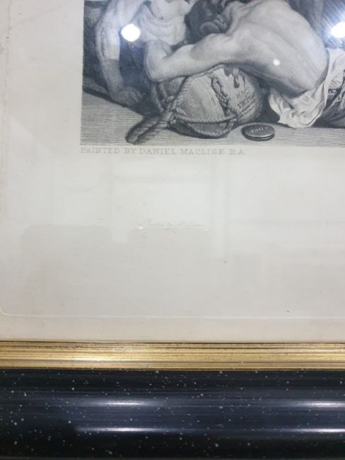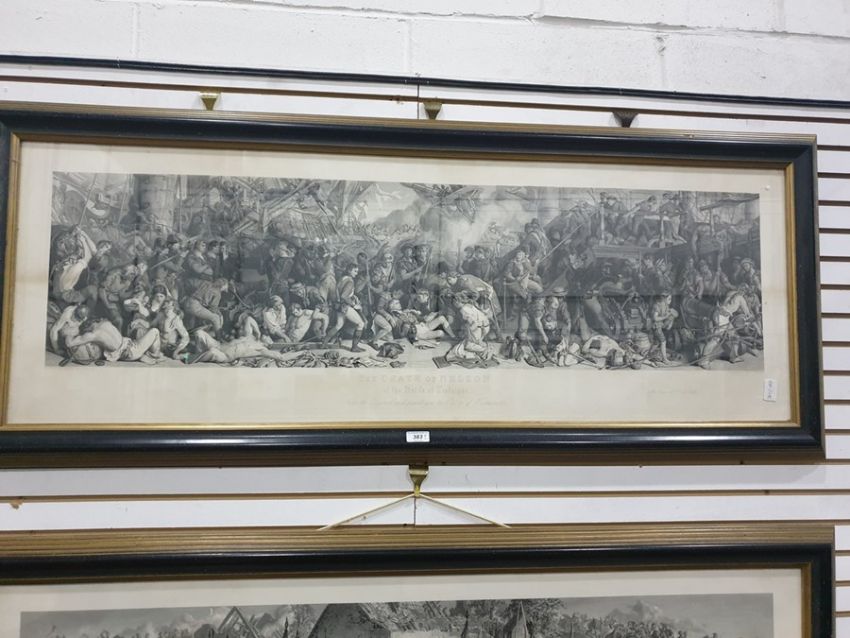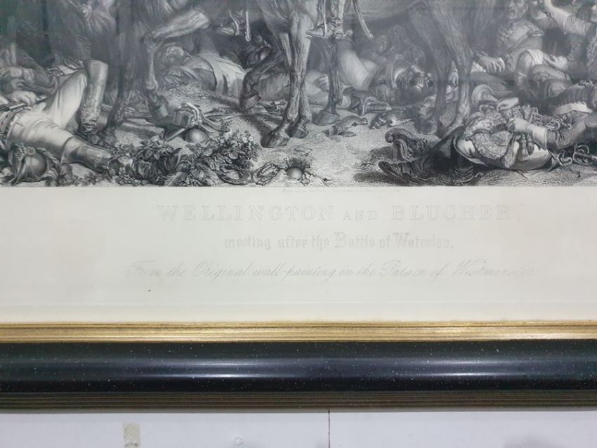 Pair engravings by Lumbstocks and Charles Sharp "The death of Nelson" and "Wellington and Blucher" each 39 x 120cm approx (Art Union of London 1875)