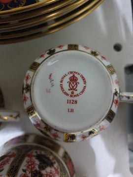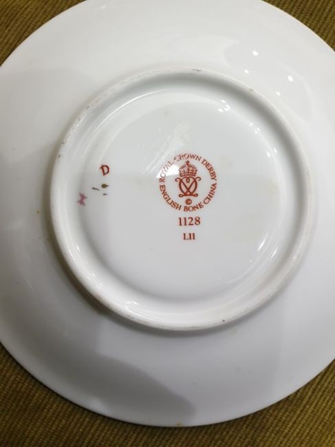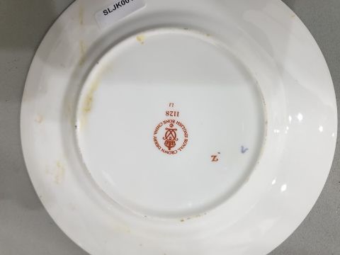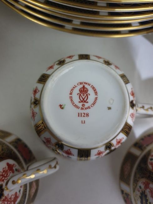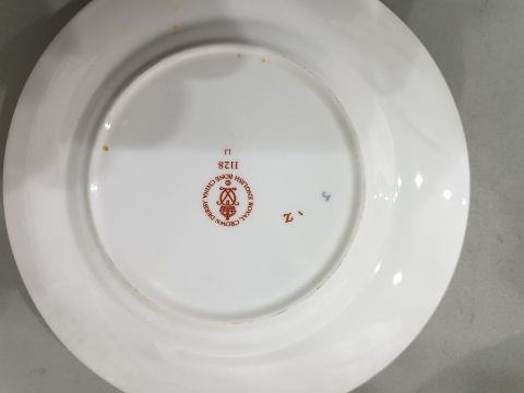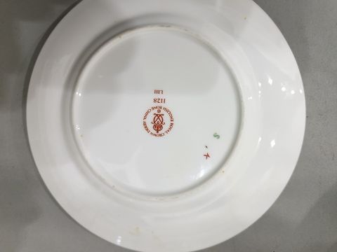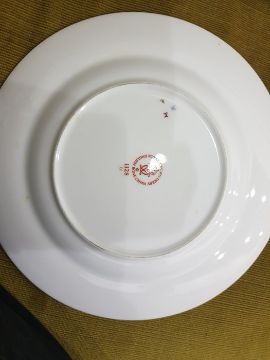 The 6 teacups are 6.5 cm tall and have a diameter of 8.5 cm on the top. The 6 saucers are 2.5 cm tall and have a diameter of 15 cm. The 6 side plates are 2 cm tall and have a diameter of 16 cm. The 6 luncheon plates are 2.5 cm tall and have a diameter of 21.5 cm. The 6 dinner plates are 3 cm tall and have a diameter of 27 cm. There a few small scratches on the plates but otherwise they are in good condition. Please see attached images.
