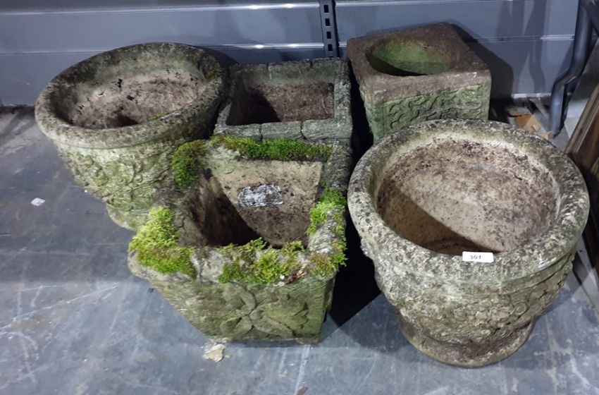 Pair of stoneware garden planters and three others (5)