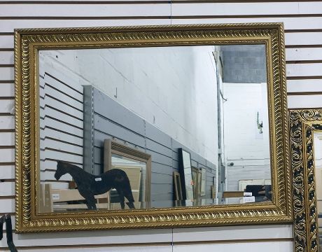Gilt rectangular wall mirror together with another mirror.