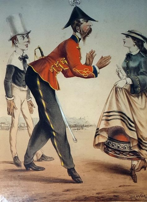 Four French humorous military prints after Draner and colour engraving Bird Nest (5)