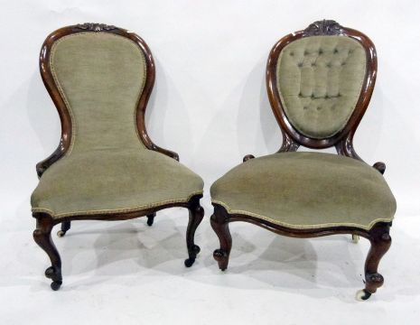 Two 19th century salon chairs in grey ground upholstery, to cabriole supports (2)
