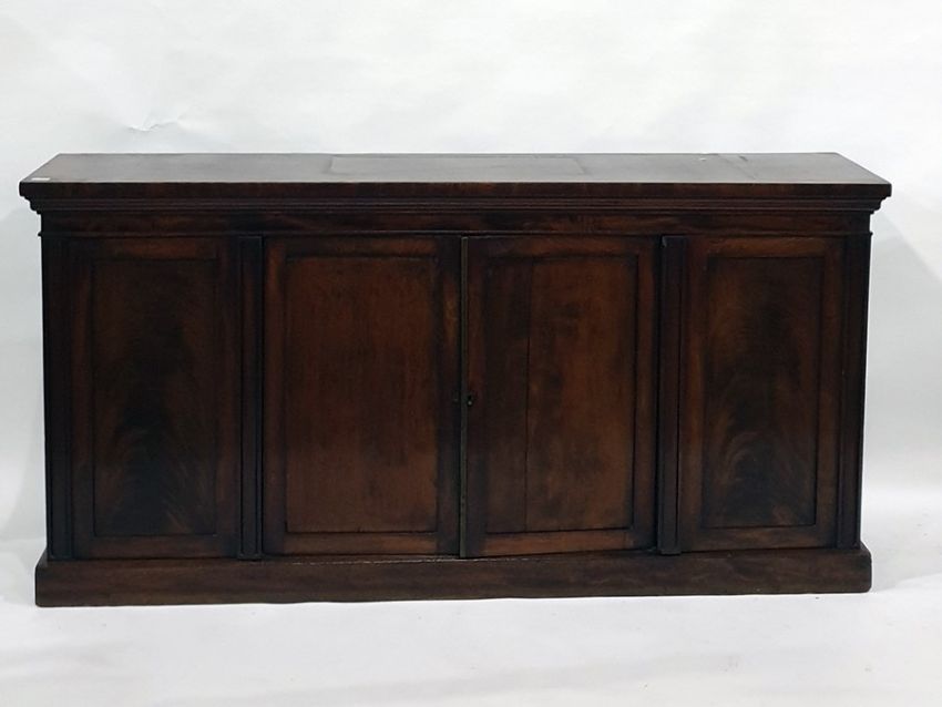 19th century mahogany sideboard of four doors, raised upon a plinth base, 183cm x 91cm