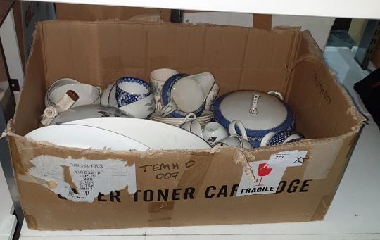 Assorted plate, pewter including tankards, ceramic jugs, assorted glassware including champagne, decanters, wines, fruit bowl, and a framed tapestry (2 boxes and a picture)