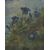 Oil on card, unattributed, study of blue flowers on mossy bank 9.5 x 9.5cm in ornate pierced gilt frame and a watercolour-gouache drawing mountain river landscape circular (2)