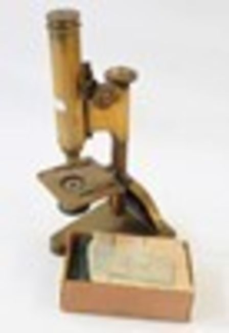 R & J Beck of London brass microscope and slides