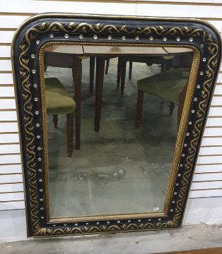 Mirror in ebonised frame with gilt ribbon and vine decoration
