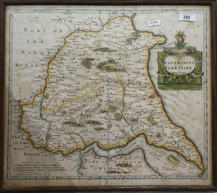 after Robert Morden, East Riding and Yorkshire ,some foxing and a Strip map Pickering to Scarborough