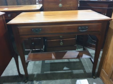 19th century walnut single drawer side table on square section tapering supports to castors, 91.5cm x 51cm