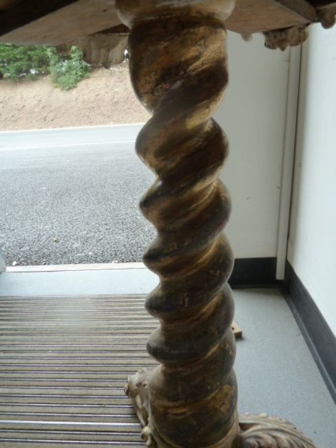 A 19th century mirror-top circular centre table, the moulded edge above a gilt twisted tapering column, to three cabriole legs, terminating to scrolls, 56cm diameter Condition ReportPLease see images, there is wear and loss of gilding, also the edges of the table