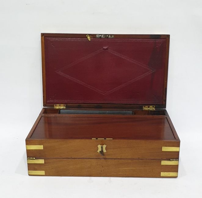 19th century mahogany writing slope with brass inlay to the centre and brass bindings