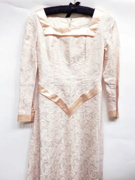 1960's satin wedding dress with drop waist, full train; another plain satin wedding dress with a scoop neck and faux-pearl detail and seven other 30's/40's vintage wedding dresses (9)