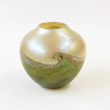 Norman Stuart Clark iridescent pale pink and green glass spherical vase