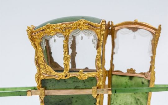 Including a Faberge nephrite and gold model sedan chair by M Perchin (lot 555)
