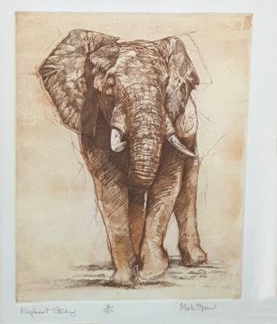 After Mark SpainLimited edition colour print"Elephant Study", 7/150, signed in pencil lower right Late 19th/early 20th century schoolWatercolourStill life study, grapes on vine, unsigned (2)