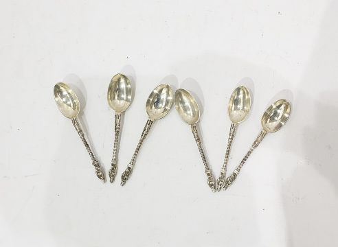 Set of six Edwardian silver apostle-top and rattail coffee spoons, London 1904 (6)