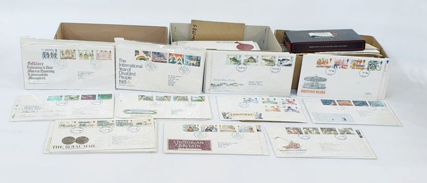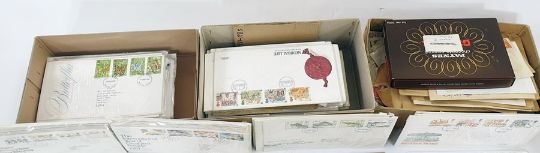 Box of loose stamps and two boxes of First Day Covers (3)