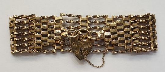 9ct gold seven-bar gate bracelet with padlock clasp, 16g approxCondition Reportthe length is approx 16 cms