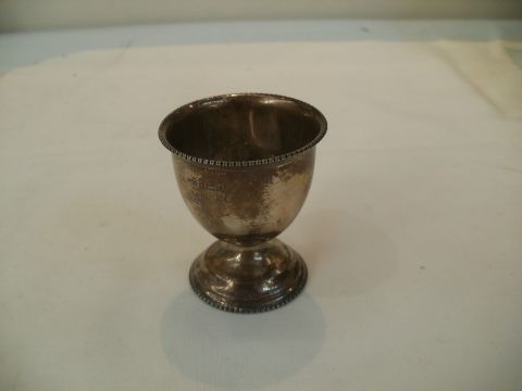 Cased silver eggcup and teaspoon, Birmingham 1967Condition ReportBoth items are assay-marked with' B&Co'  (1967) No visible marks or dents on either item.
