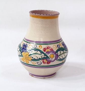Doulton Lambeth vase with incised decoration, in brown and blue (damaged) and a Poole vase (2)