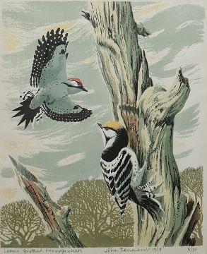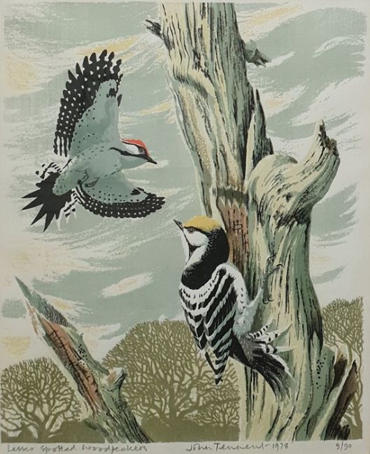 John TennentLimited edition lithograph 9/90"Lesser spotted woodpeckers", signed and dated 1978 lower right, 40 x 32.5cm