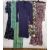 Blue figured satin 1940's day dress with belt, a chiffon cocktail dress labelled 'Fiona Dresses', a green chiffon Anna Beltrao dress with flower detail to the bodice, a matching sleeved shawl with diamante detail, a full length maxi skirt decorated 1920's fashion, a purple chiffon dress and cape and a Caroline Charles cream net and silver thread decorated skirt and matching top (7)